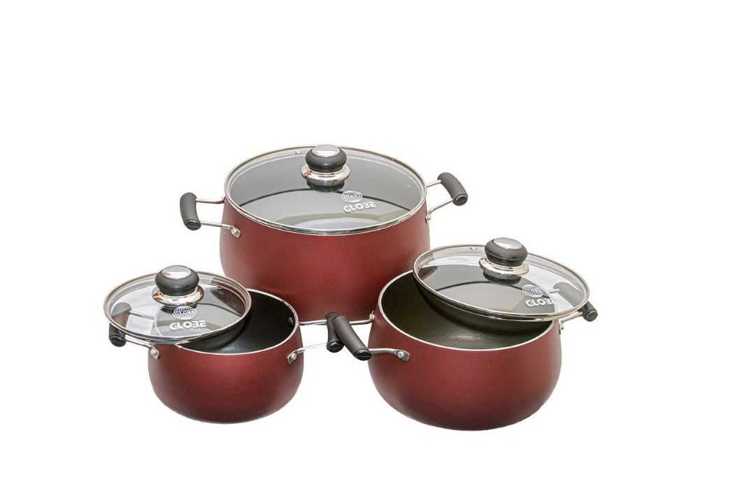 Features: Material: High-quality, durable aluminum or stainless steel with a non-stick or enamel coating (depending on the set) Shape: Unique "belly" shape for efficient heat distribution and extra cooking capacity Sizes: Includes three essential sizes (e.g., 1.5-liter, 2.5-liter, and 4-liter) to handle a variety of recipes Lids: Matching lids with secure-fitting design to retain moisture and enhance flavors Handles: Ergonomic, heat-resistant handles for safe and comfortable handling Compatibility: Suitable for all stovetops, including induction (if applicable), and oven-safe up to 250°C (482°F) Cleaning: Easy to clean with dishwasher-safe or hand-wash design Benefits: Efficient Cooking: The belly-shaped design ensures even heat distribution and provides ample space for cooking and simmering.