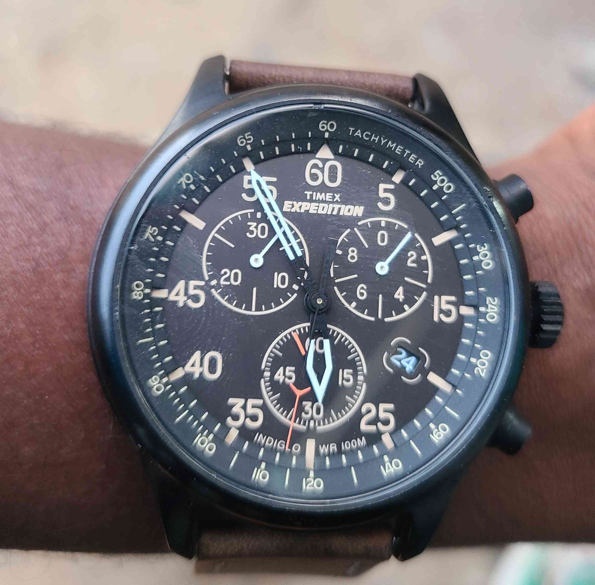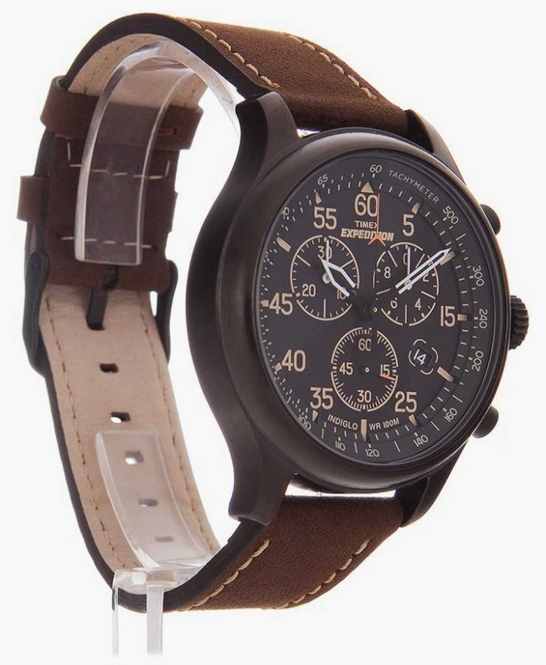 *Equipped with a comfortable brown natural leather strap.*Chronograph functionality for accurate timing.Water resistant up to 100 ft (30 m) for everyday use.*INDIGLO backlight for visibility in low light conditions.